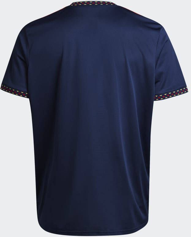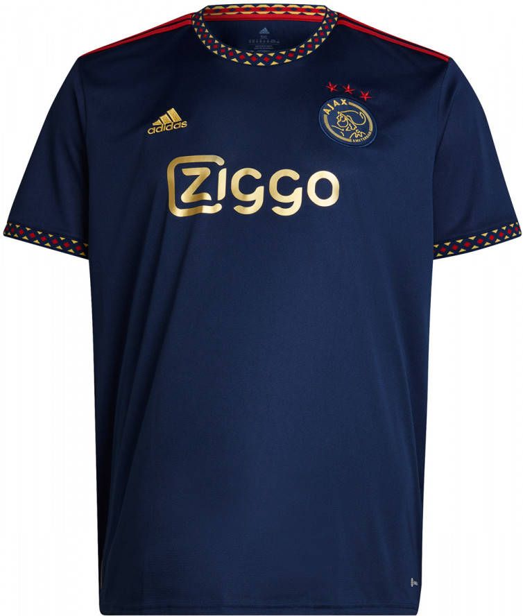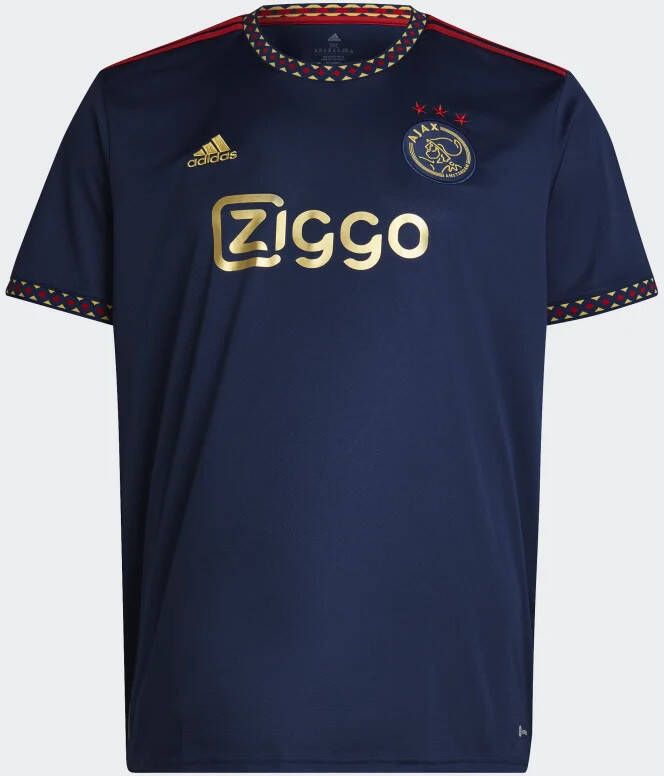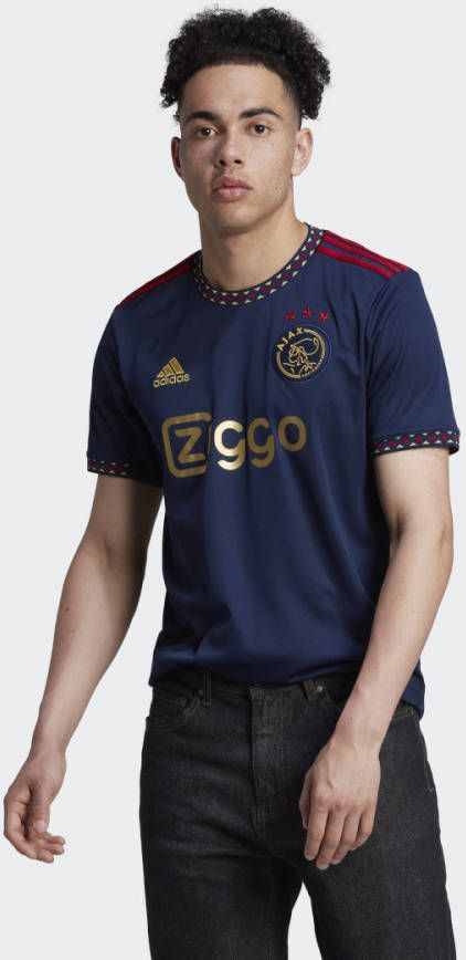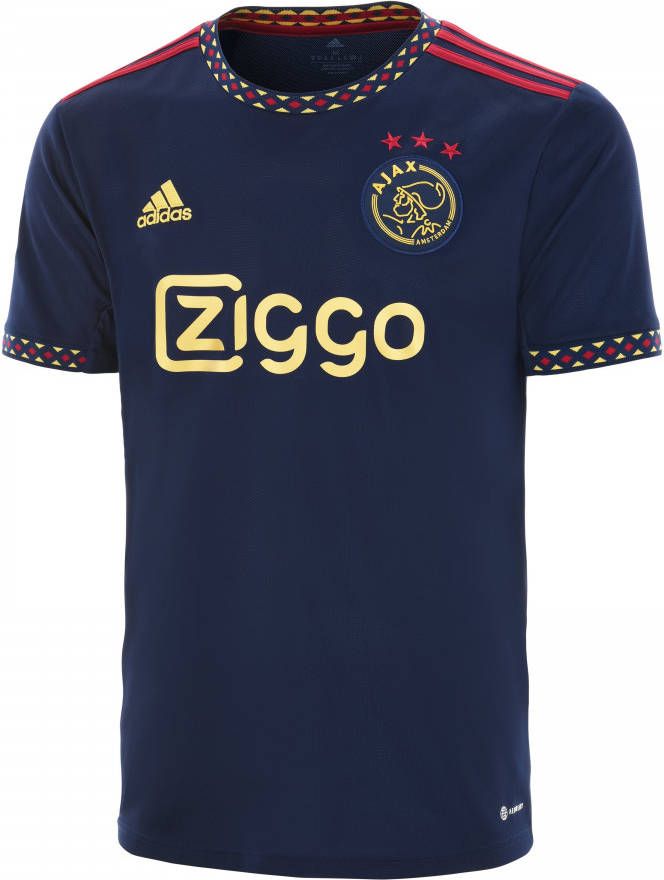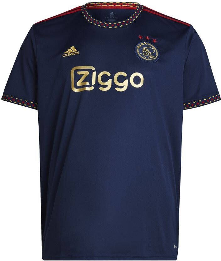 Dit is het nieuwe adidas Ajax uitshirt voor het seizoen 2022-2023. Het shirt is geïnspireerd op het shirt dat de spelers van Ajax dragen tijdens de uitwedstrijden. Het uitshirt heeft een donkerblauw design aangevuld met rode en gouden accenten, die verwijzen naar de successen en de klasse van de club. Draag nu dit Ajax uitshirt en toon je trots voor de club!