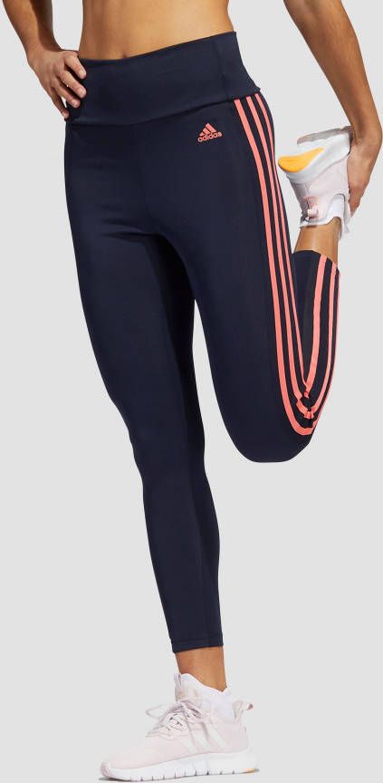 adidas designed to move high rise 3 stripes 7/8 sporttight blauw/roze dames