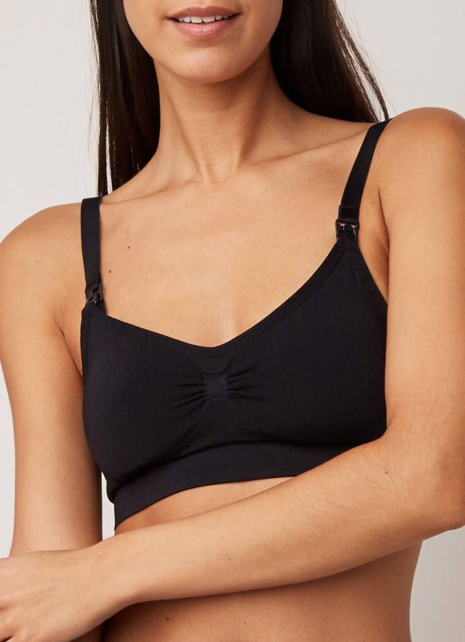 Details • Bustier • Uitneembare binnencups • Zonder beugels • Ontwerp zonder beugels met geïntegreerde onderstuening en verwijderbare softings • Kan gedragen worden tijdens en na de zwangerschap • Clips vooraan om de bh gemakkelijk te openen voor borstvoeding • Haakjessluiting achteraan in 3 posities • Verstelbare schouderbandjesSamenstelling en onderhoud • 90% polyamide, 10% elasthan • Onderhoud : zie etiket.